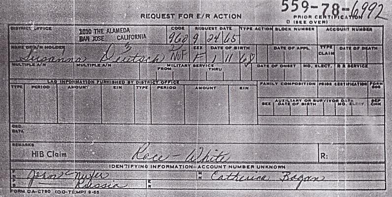 I requested an SS-5 form from the Social Security Administration for Susanna Nufer Deutsch. They sent me this OAC-790 form instead stating this was the only document available. This form is completed when a claim for benefits is filed and contains the same information as the form SS-5. The major data reflected here is: